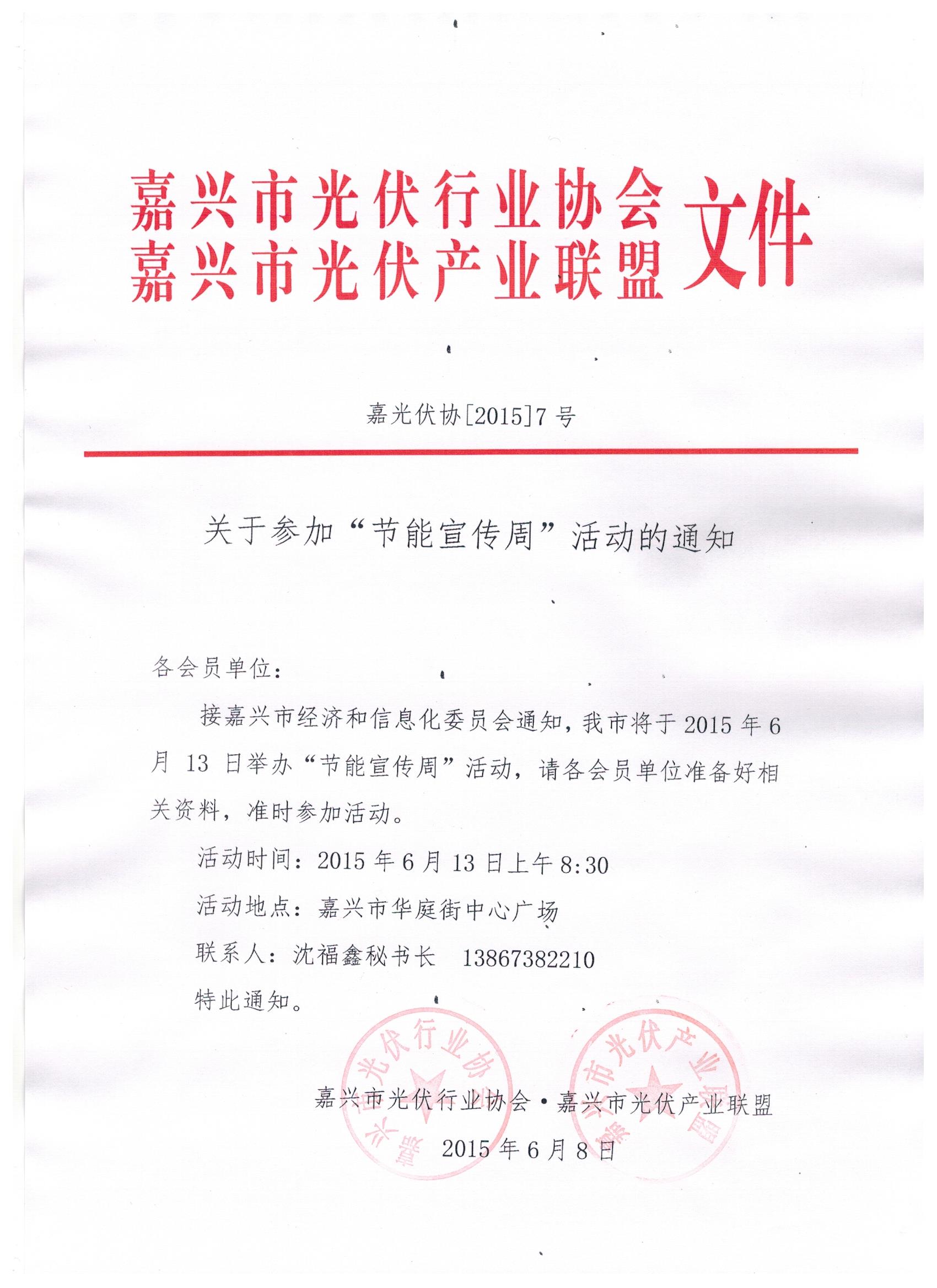 嘉光伏协[2015]7号-关于参加“节能宣传周”活动的通知