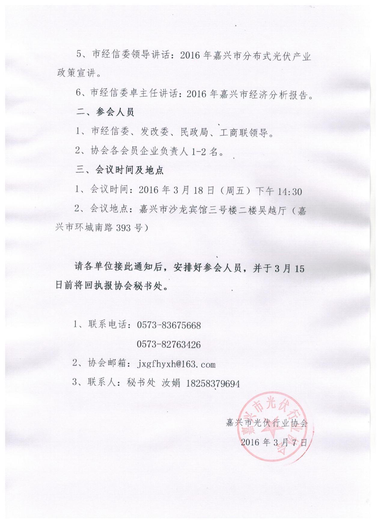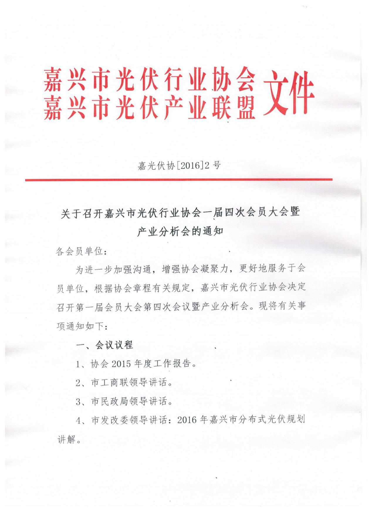 嘉光伏协[2016]2号-关于召开嘉兴市光伏行业协会一届四次会员大会暨产业分析会的通知