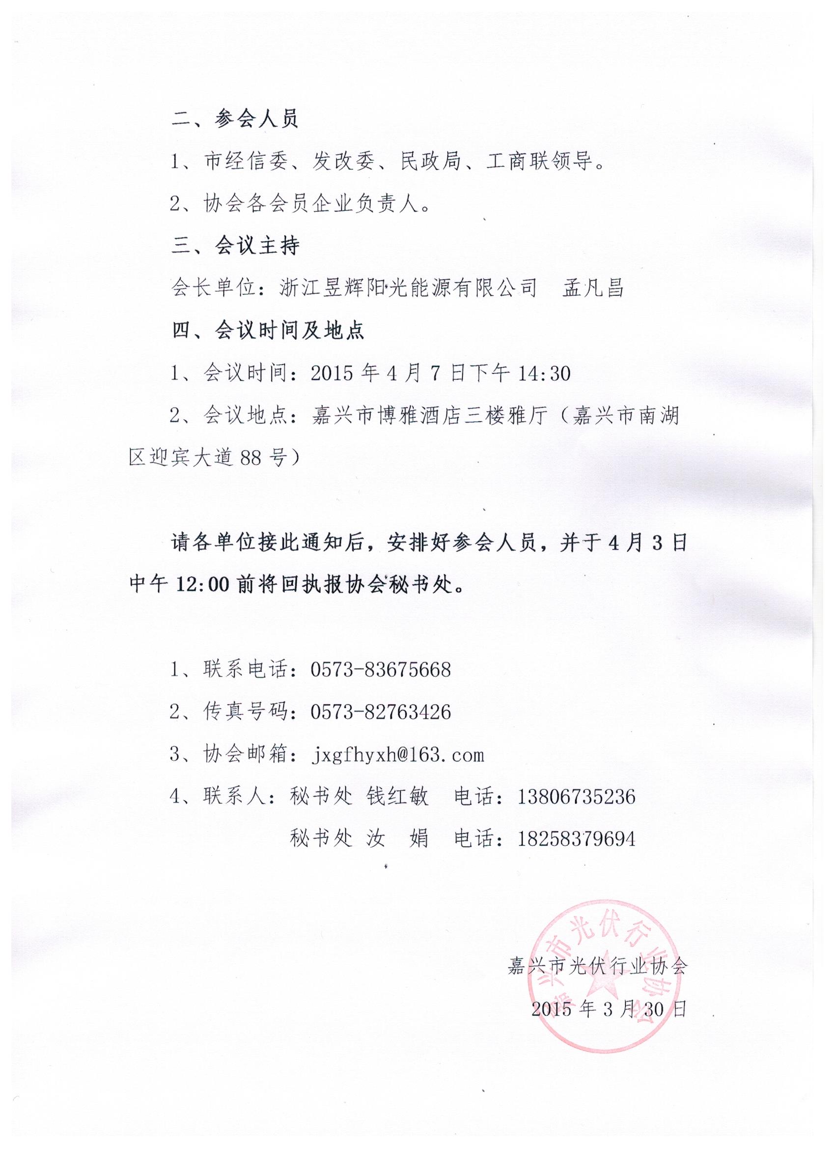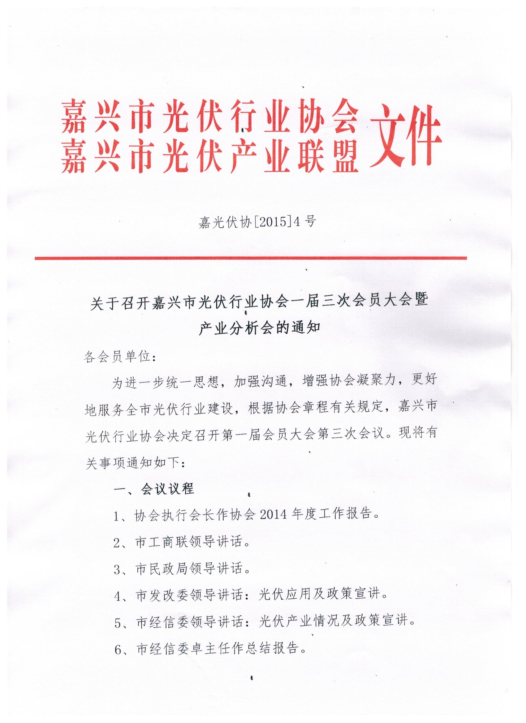 关于召开嘉兴市光伏行业协会一届三次会员大会暨产业分析会的通知