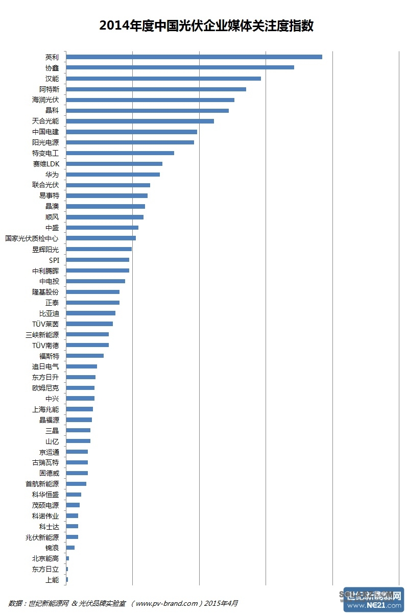 PVBL发布2014年度中国光伏企业媒体关注指数