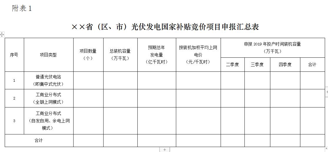 请各?。ㄇ?、市)能源主管部门在地方组织竞争配置项目业主、对自愿申报国家补贴项目进行审核等工作基础上,于2019年X月X日前按相关要求将2019年拟新建的补贴竞价项目、申报上网电价及相关信息报送国家能源局。