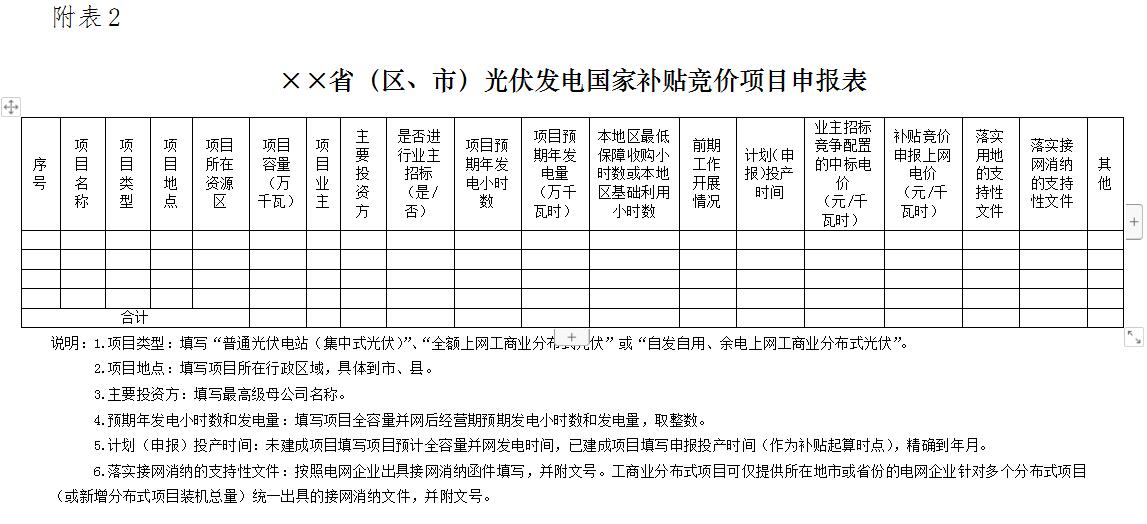 2.××?。ㄇ?、市)光伏发电国家补贴竞价项目申报表