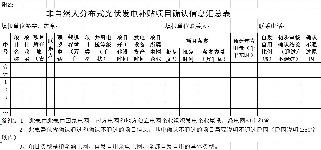 2、可再生能源发电补贴项目确认信息汇总表